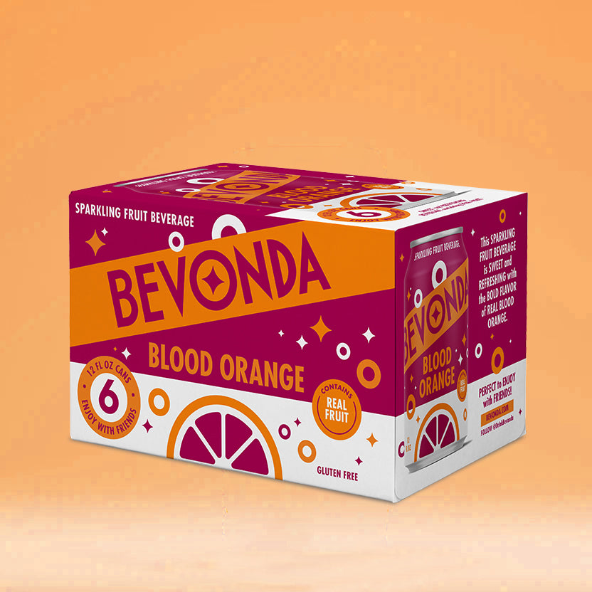 - (1) 12oz can Bevonda Blood Orange Sparkling Fruit Beverage, divided